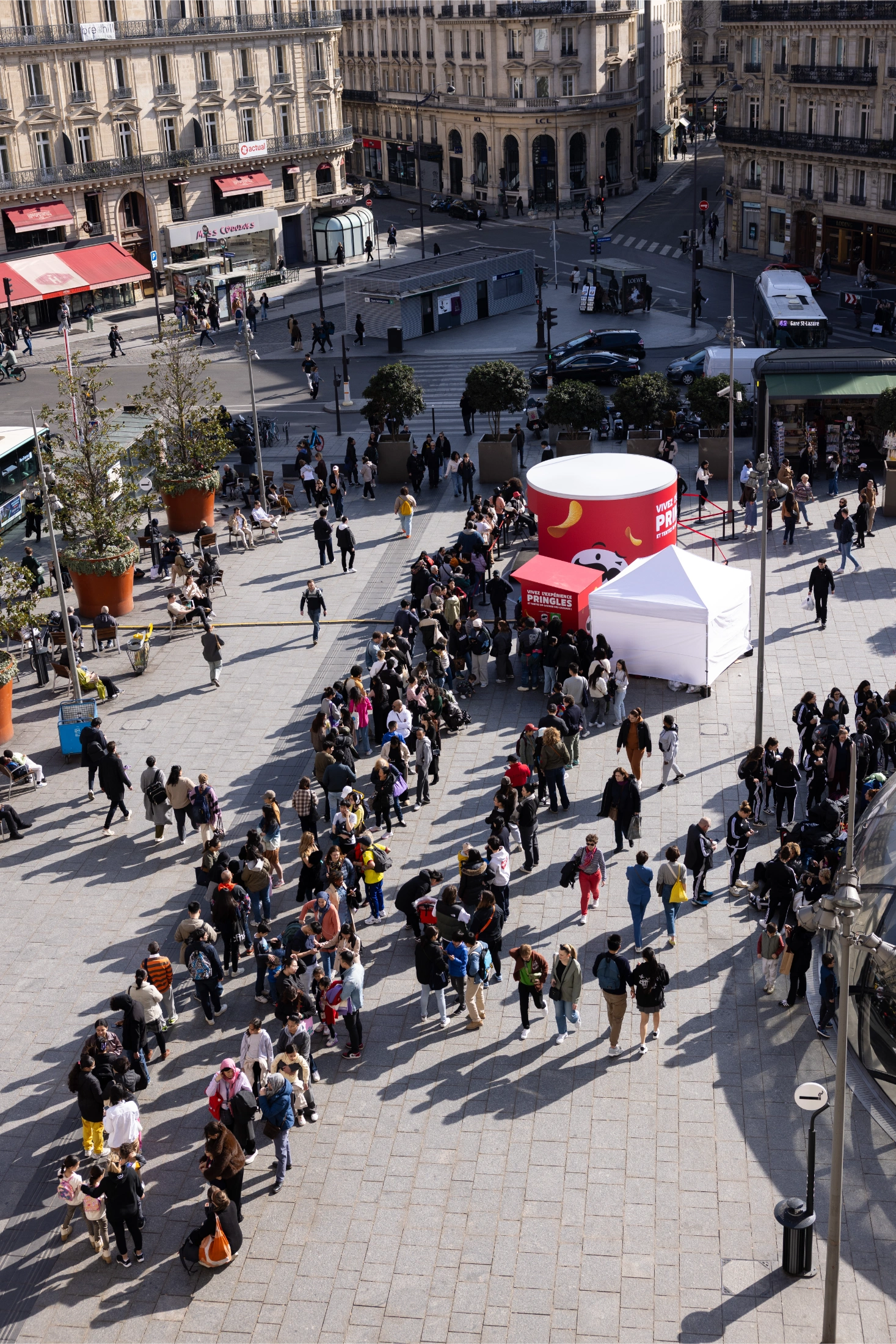 Au cœur de la campagne : la création d’un stunt immersif en plein centre de Paris, invitant les passants à vivre une expérience inspirée de l’univers Super Mario au sein d’une can géante Pringles. L’opération a ensuite été amplifiée via des créateurs de contenu afin de maximiser l’impact et la visibilité de la campagne.